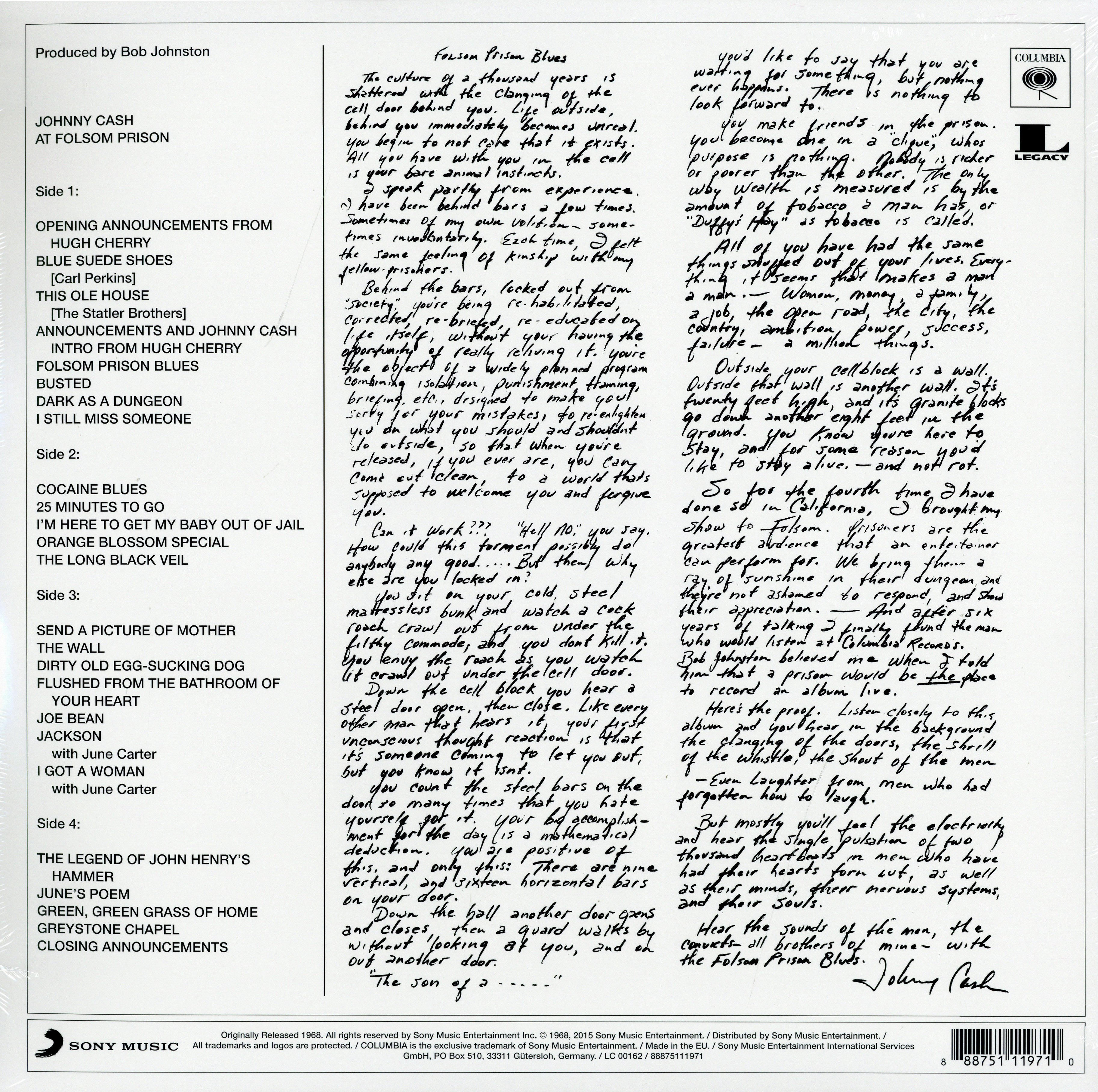 Виниловая пластинка JOHNNY CASH - At Folsom Prison (Legacy) (2LP)