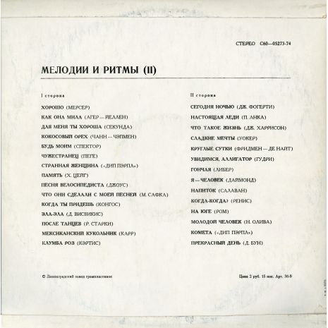 Виниловая пластинка Мелодии и Ритмы - Выпуск II - Танцевальная музыка (Мелодия) (LP)