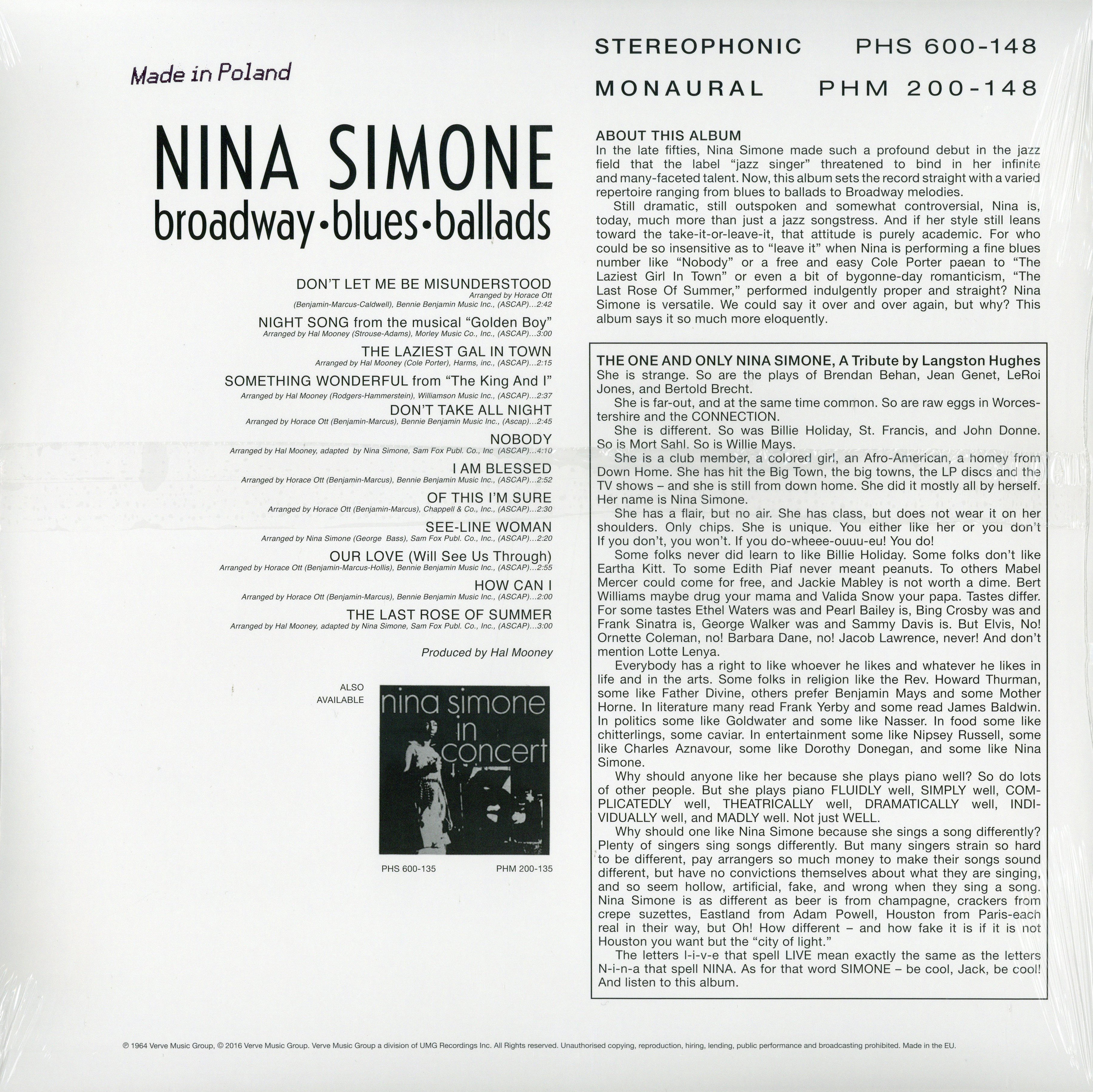 Виниловая пластинка NINA SIMONE - Broadways, Blues, Ballads (Verve) (LP)
